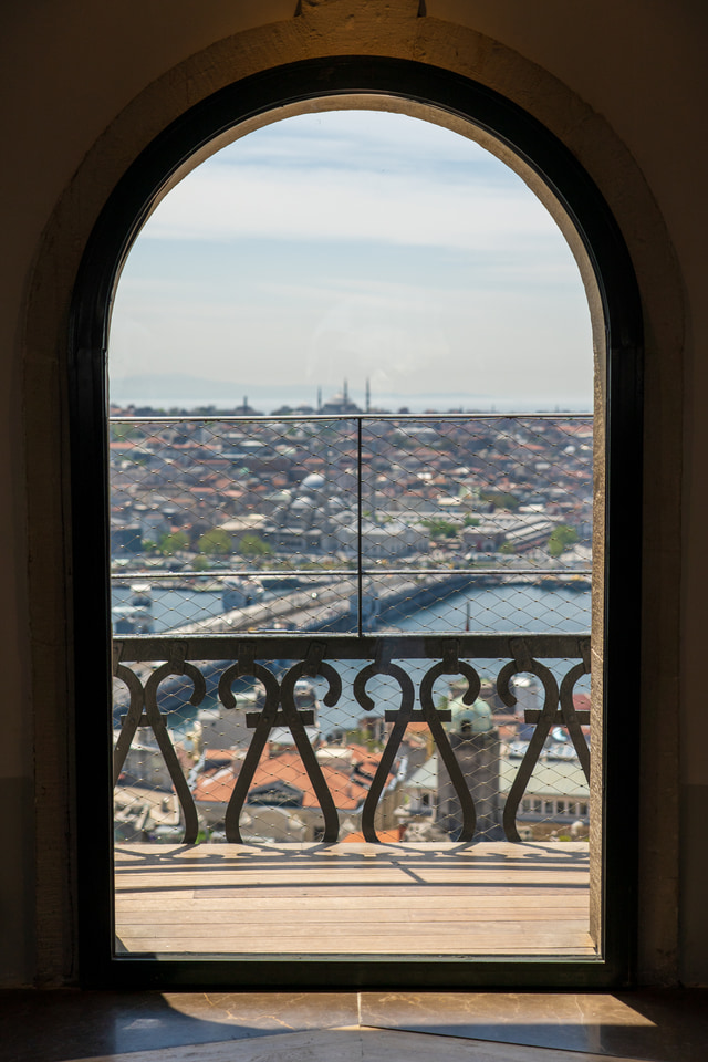 新市街のシンボルとしてそびえるガラタ塔の高さは約67m。上層階へはエレベーターを利用することができます。ぐるりと一周できる展望テラスからは、それはそれは素晴らしい360°の大パノラマ! イスタンブールに着いたらまずこの絶景を眺めて、街の規模や観光名所の位置関係を確認してみるといいかも。