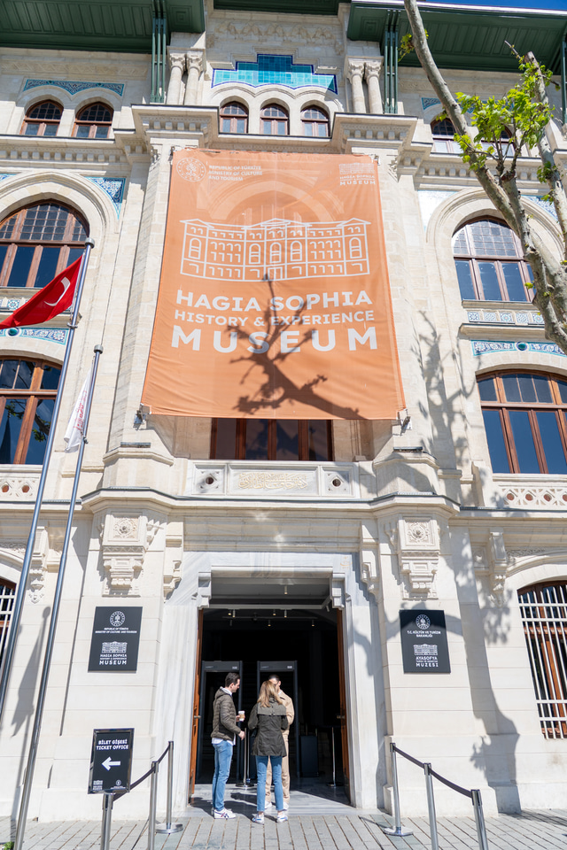 続いて立ち寄ったのは「アヤソフィア歴史体験博物館」。このあと見学する世界遺産アヤソフィアをインタラクティブなデジタル展示で楽しみながら学べるミュージアムです。日本語の音声ガイドで理解を深めたら、いざアヤソフィアへ!