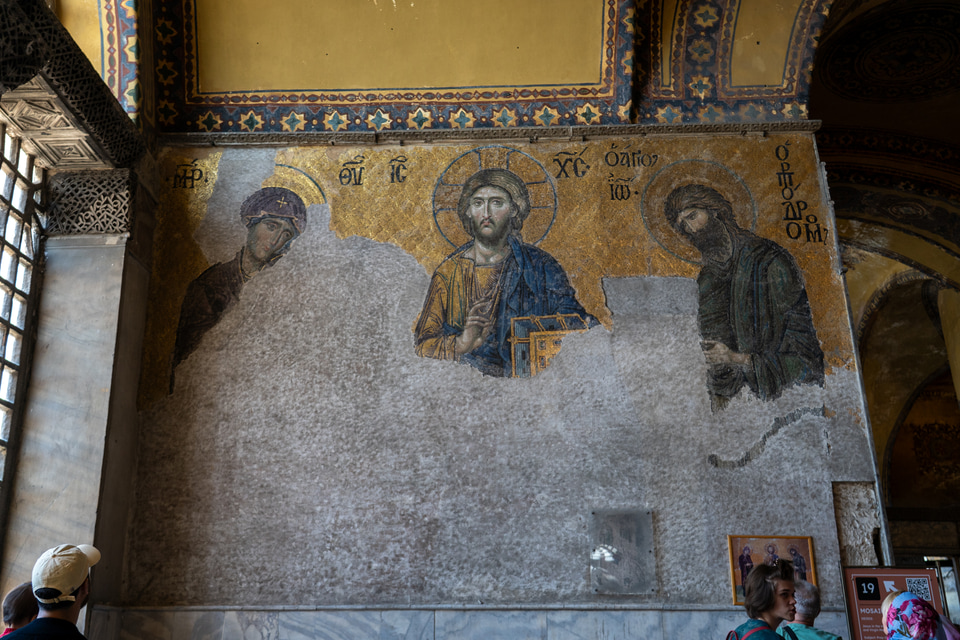 イスタンブールの宗教の変遷と大きく関わっている歴史遺産アヤソフィア。現在1階はモスクとしての利用なのでムスリム以外は入れず(時間になると礼拝が始まる)、観光客は博物館として2階に入ることができます。