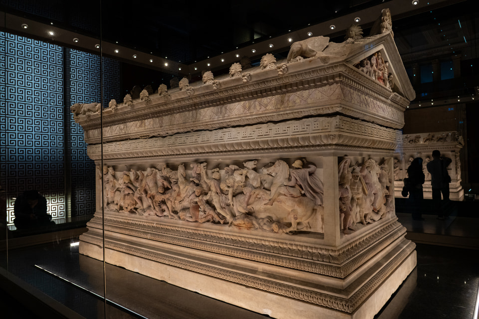 イスタンブール歴史地区の散策、お次はトルコで出土した古代遺物などを所蔵する「イスタンブール考古学博物館」です。ここの展示品のハイライトは「アレキサンドロスの石棺」。そのほかにも大理石の彫刻像などすごそうな収蔵物がたくさんあるのですが、あまりに数が多過ぎて感覚が麻痺してきます。