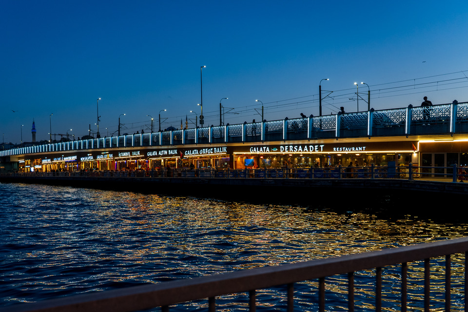 旧市街と新市街を結ぶ全長490mのガラタ橋はトラムも走るイスタンブールの交通の要です。朝から晩まで釣り糸を垂らすたくさんの人でにぎわっているのが不思議な光景でした。