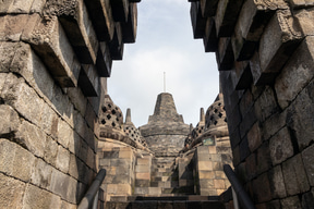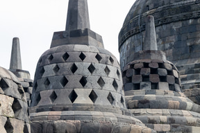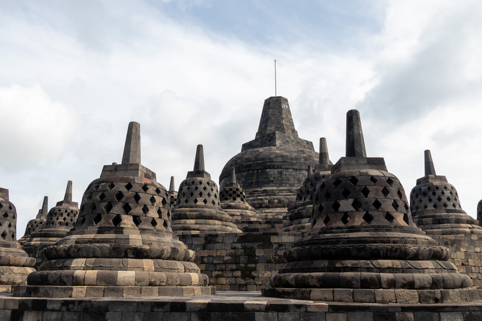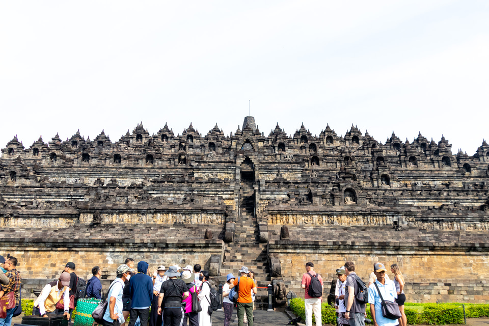 精密なレリーフや彫刻、仏像などなど、見どころはそこかしこにあり、仏教の三界(欲界・色界・無色界)を表現した建物は下から上へと登っていくたびに視界も変わってくる。ストゥーパが立ち並ぶ無色界は悟りの境地を表わしており、そこから見える景色に感動を覚えることだろう。