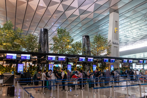 ラウンジを見学したあと、搭乗時間まで1時間ほどあったのでターミナル3の端っこまで行ってみることにした。メイン通路ははるか遠くまで伸びているが、まぁなんとかなるだろうと歩いてみたら、戻ってくるまで30分近くかかった。それもそのはずで、“コ”の字形に近い形のターミナル3の長辺は1.46kmで、半分だとしても730mもある。そして曲がり角から先端にある28番ゲートまでは300m。分速80mで計算しても約13分はかかる距離だ。興味と時間がある方は歩いてみてください。