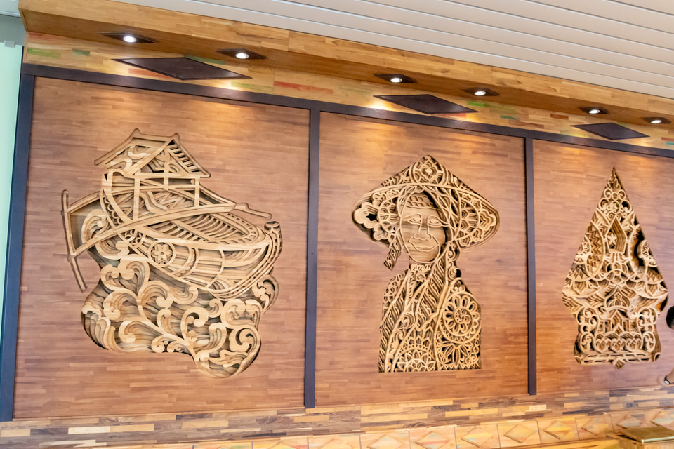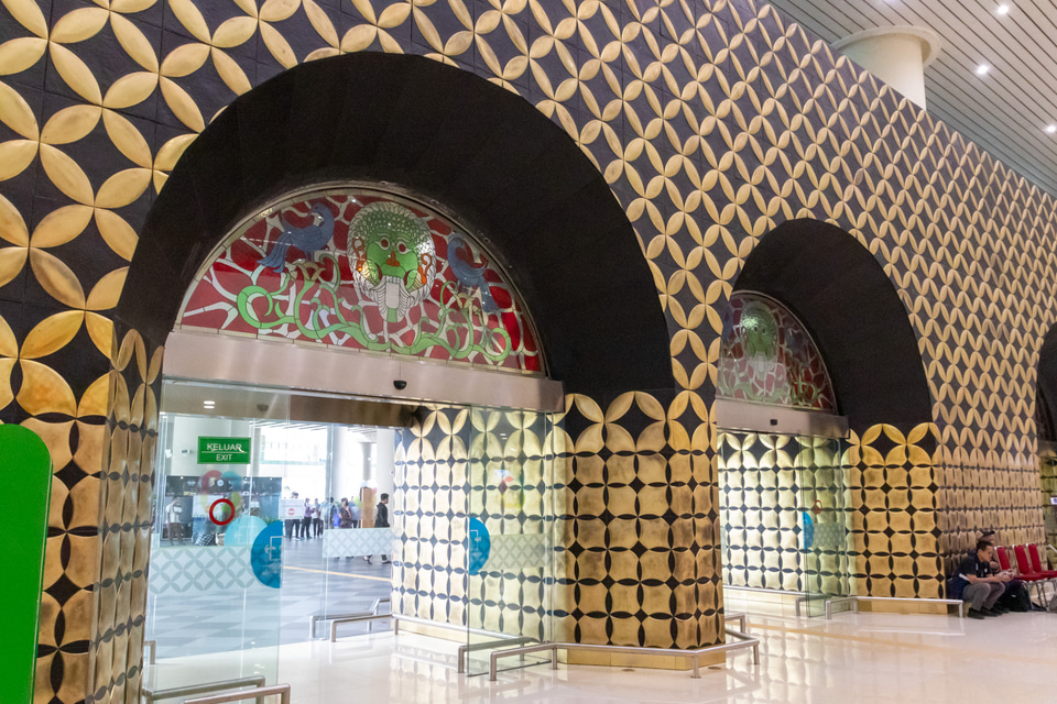 到着したジョグジャカルタ空港は2019年に完成し、2020年より本格的に運営を始めただけあって建物などはかなり新しい。以前は市内にあったが、手狭になったので海沿いに移転したとのこと。建物はインドネシアらしいアートや造形が施されており、古都の玄関口としてふさわしい感じだ。