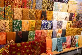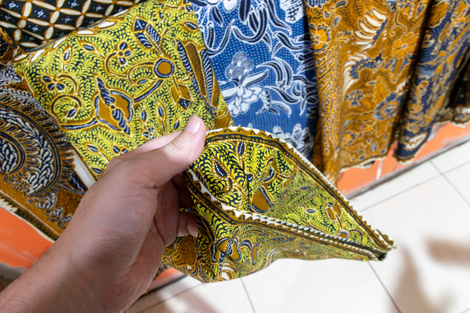ジョグジャ(ジョグジャカルタの通称)と言えば、バティック(ろうけつ染めの服飾製品)がとにかく有名だそうで、いたるところにバティックを扱ったショップがある。価格は500円以下の格安品から1万超えまでとさまざまで、リーズナブルな製品は図柄がプリントされたものが多いとのこと。本格的なものは裏地まで染まっているそうなので、袖口などをめくって確かめてみるといい。