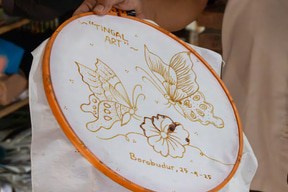 翌日に郊外のバティックの工房を見学させてもらったが、専用の道具で溶かしたろうを生地に付着させていくという、とんでもなく緻密な作業には感心することしきりだった。