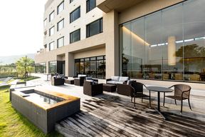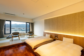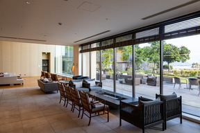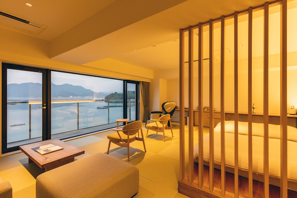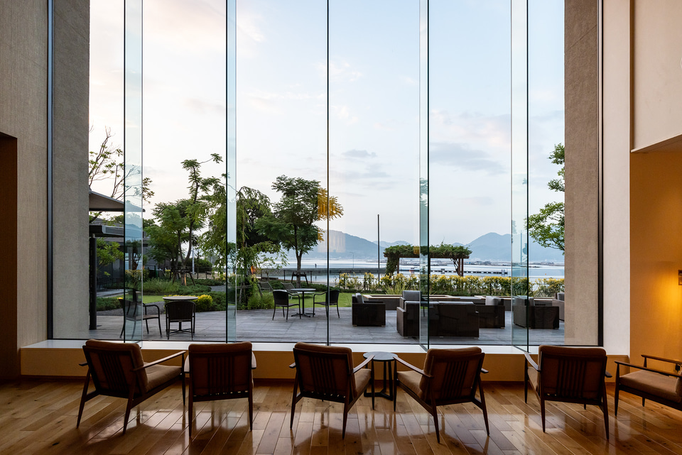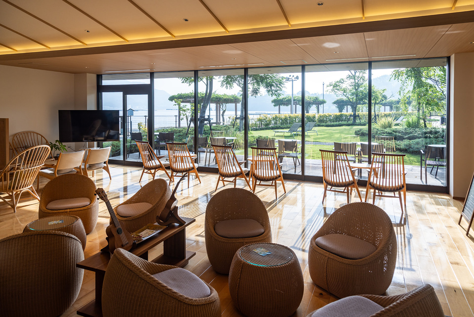 そんな背景もあり、もともとこの地にあった温泉施設「シーサイド温泉のうみ」、そして国民宿舎「能美海上ロッジ」はともに閉館となってしまう。それを受けた江田島市が観光振興のために宿泊施設を公募し、2021年7月に新規開業したのが、今回宿泊した「江田島荘」(広島県江田島市能美町中町4718)だ。全32室でスタッフは約60名とホテルとしては規模は大きくないものの、市内では最大の宿泊施設だ。