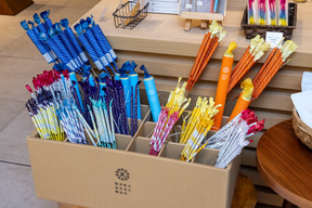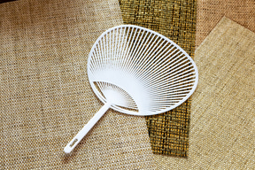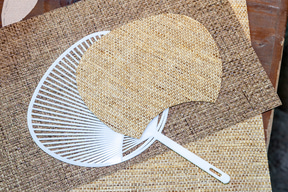 ここでは工場見学とともに紙布を使った雑貨づくりの体験が可能となっており、今回は夏ということもあって団扇づくりにトライすることになった。