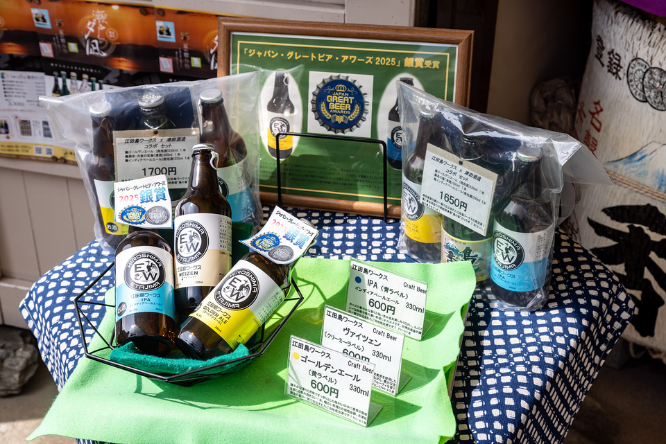 ここは日本酒を製造していた津田酒造の一角に誕生したクラフトビール(発泡酒)の醸造所で、2023年に誕生して以来、ゴールデンエールとIPA(インディアペールエール)、ヴァイツェンをメインに、江田島産の八朔やオリーブなどを使った江田島エールなど年間およそ6000Lを製造。津田酒造の店頭などで購入することが可能だ。