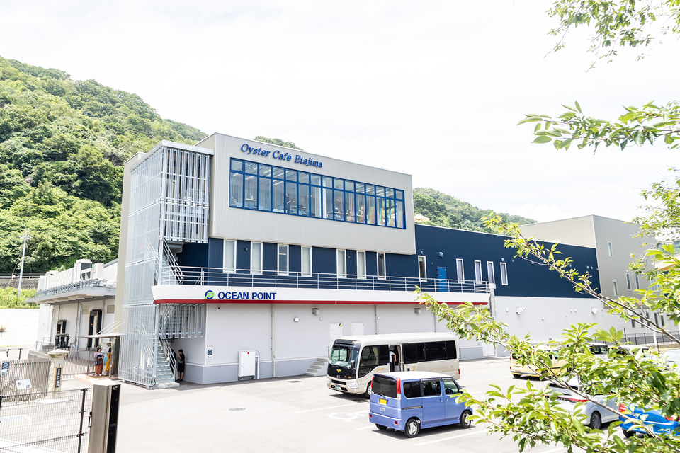 工場の脇にあるエレベーターで3階に上がると、一面がガラス張りとなっている客席からは瀬戸内や呉の町を一望することができる。ここでは牡蠣工場が一体となっているメリットを活かし広島産をはじめ厳選した牡蠣を全国から取り寄せ浄化、厳しい検査を経た牡蠣のみを使用することで一年中いつでも生牡蠣を提供することが可能だという。当日は時期的に江田島産ではなく尾道の近くにある田島産とのことだったが、配膳されるとあっという間に殻だけになっていた。牡蠣フライやスパゲティも美味しく、ここでも江田島を含めた広島の美味しさを堪能することができた。