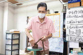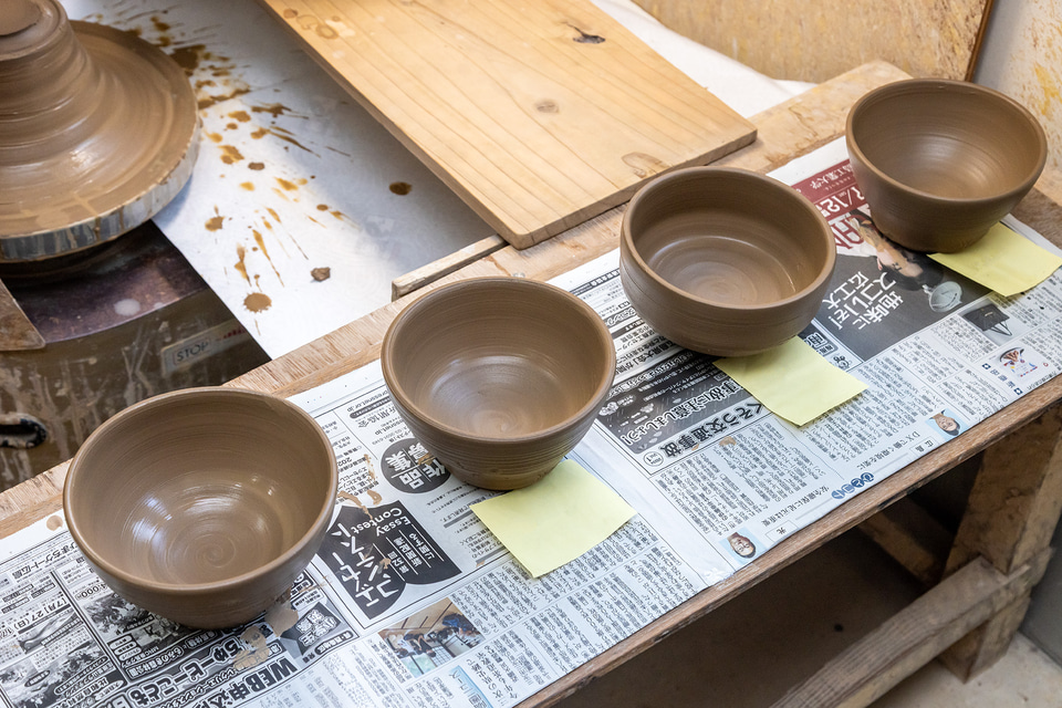 本来、陶芸はゴミなどを取り除く土づくりから気泡を取り除き均一にする土練りにはじまり、成形したあと、乾燥、約800℃での素焼き、釉がけ、1230~1250度℃の高温で本焼きしたあと、紙やすりで底を仕上げて完成となかなかに手間と時間がかかる作業。でも、ここでは形を作るところ以外はすべてやってくれるため気軽に始めることが可能だ。