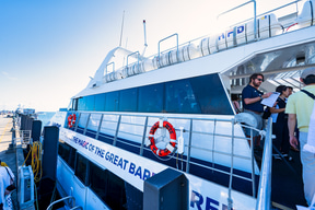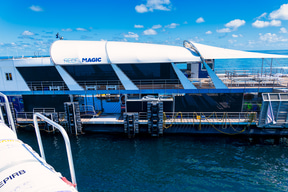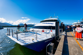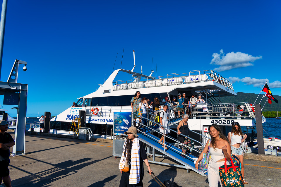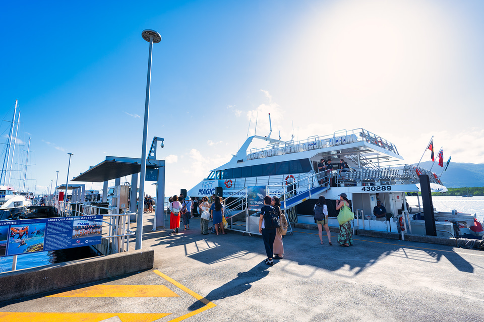 2日目は、ケアンズの中心地にあるリーフ・フリート・ターミナルから専用船に乗り、リーフマジック グレートバリアリーフツアーに。このツアーはJATAが主催した日本人向けのもので、関係者も含めて154名が乗船した。