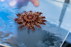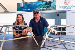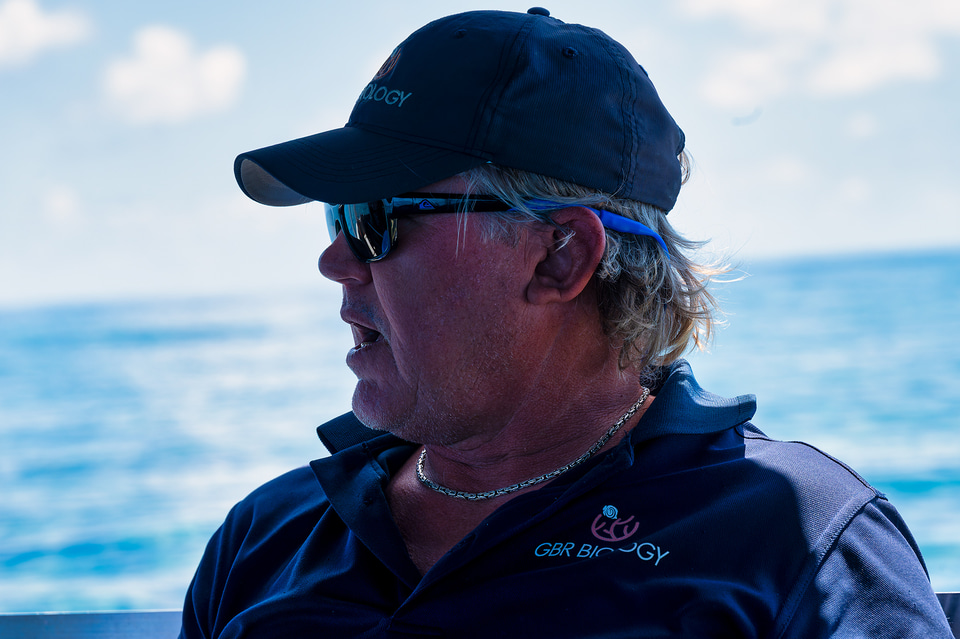 ポンツーン(浮桟橋)では、GBR生物学チームによるサンゴ再生プログラムの詳細な説明が行なわれた。特にエリック教授の語るサンゴへの情熱は印象的で、サンゴ礁の生態系が直面する気候変動や海洋汚染の影響、そしてそれらに対する科学的な対策について熱く語った。