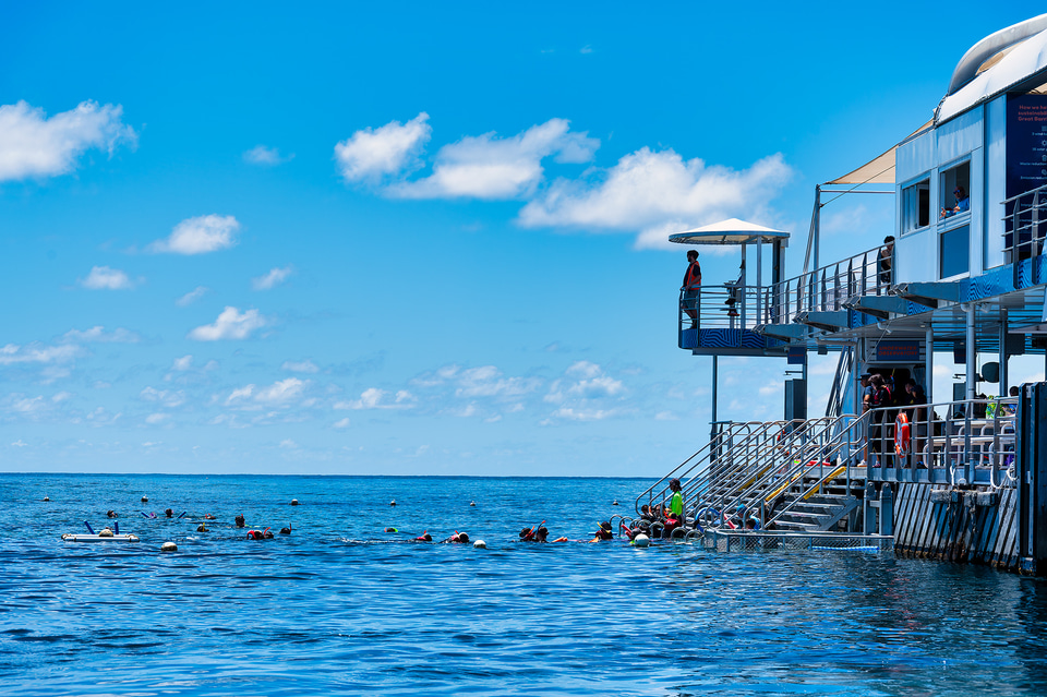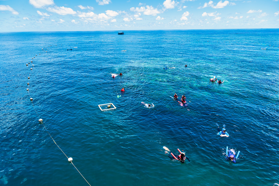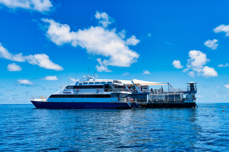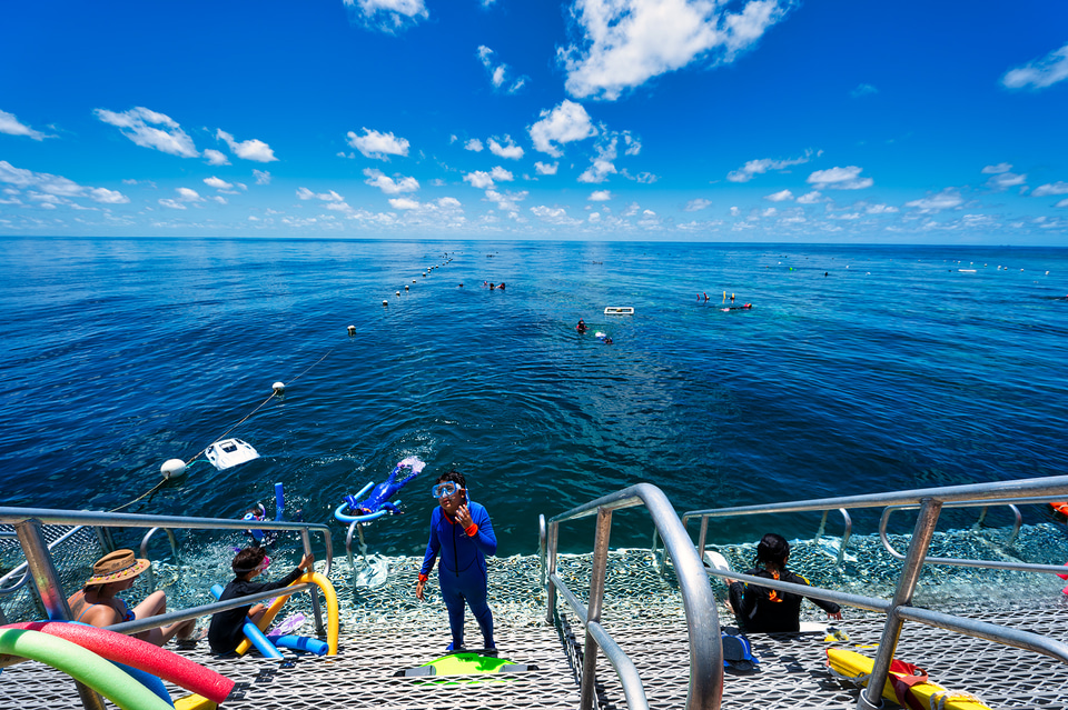 朝の清々しい海風を感じながら、約90分のクルーズを経て、リーフマジックポンツーンに到着。そこでは、ユネスコ世界遺産に登録されるグレートバリアリーフ(GBR)の息を飲むような美しさと、多様な海洋生物が生息する光景が広がっていた。