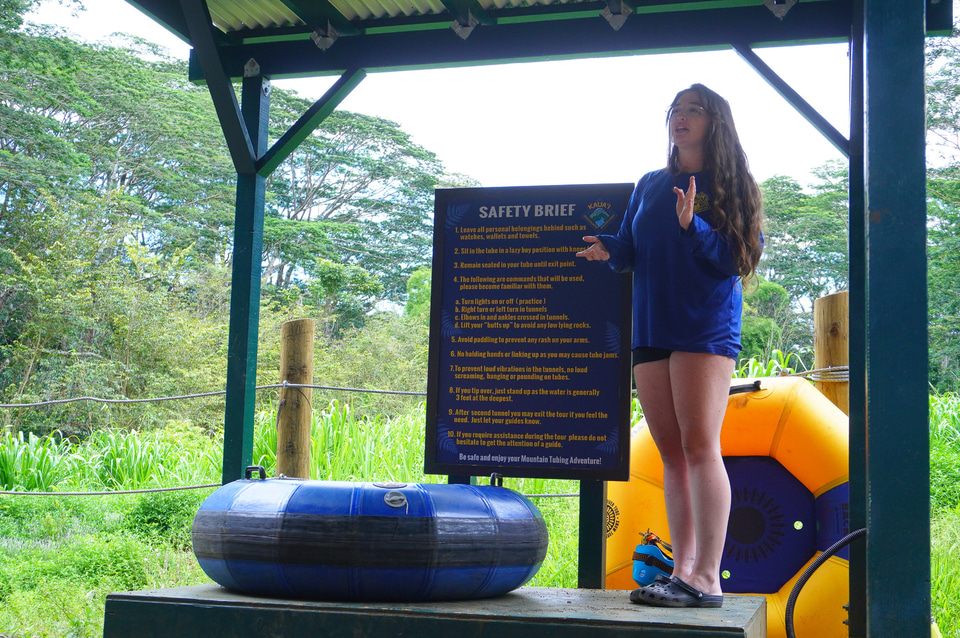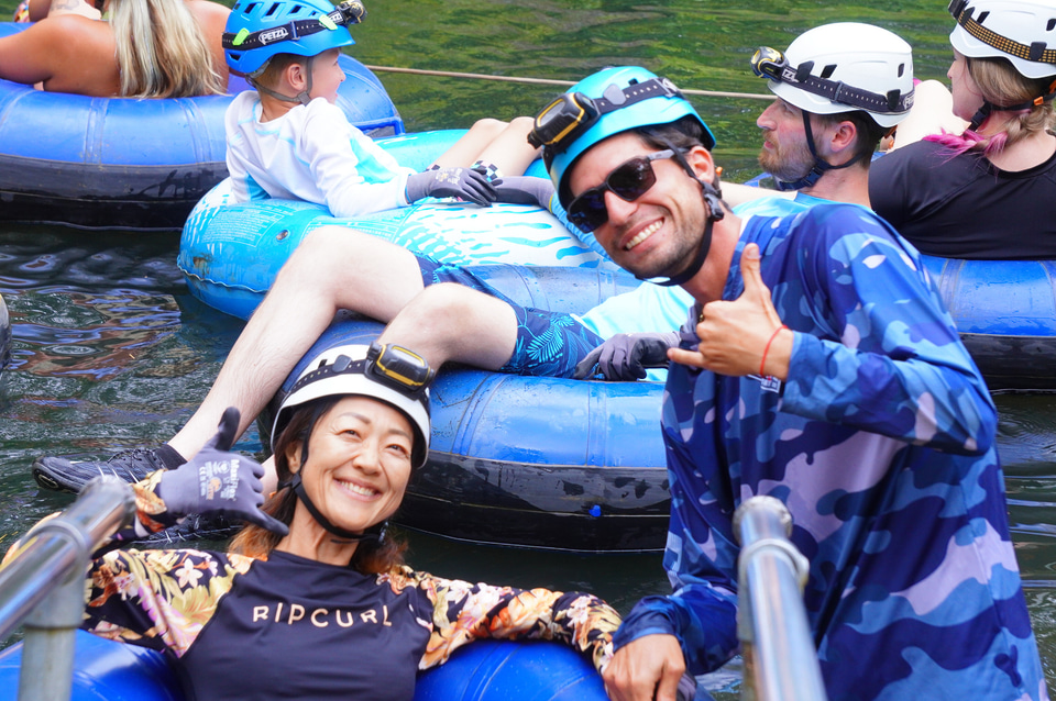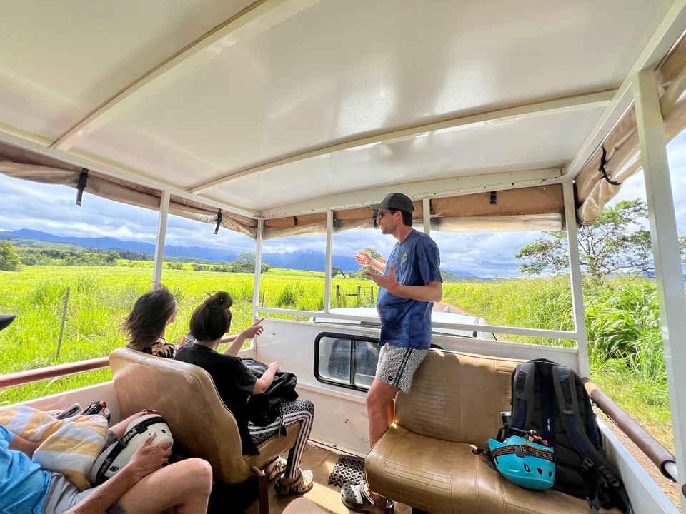 今回の担当ガイドはローカルボーイのノアさん。面倒見がよく、サービス精神旺盛の彼は、車内でツアー客に対して笑いを交えながら、この土地の歴史について話してくれた。このアクティビティで使われる水路とトンネルは、100年以上前にプランテーション労働者たちが手作業で掘って築いたもの。2000年にサトウキビの生産が終了して以来使用されていなかったが、2003年にその一部をチュービングツアー用に開放することになったのだとか。