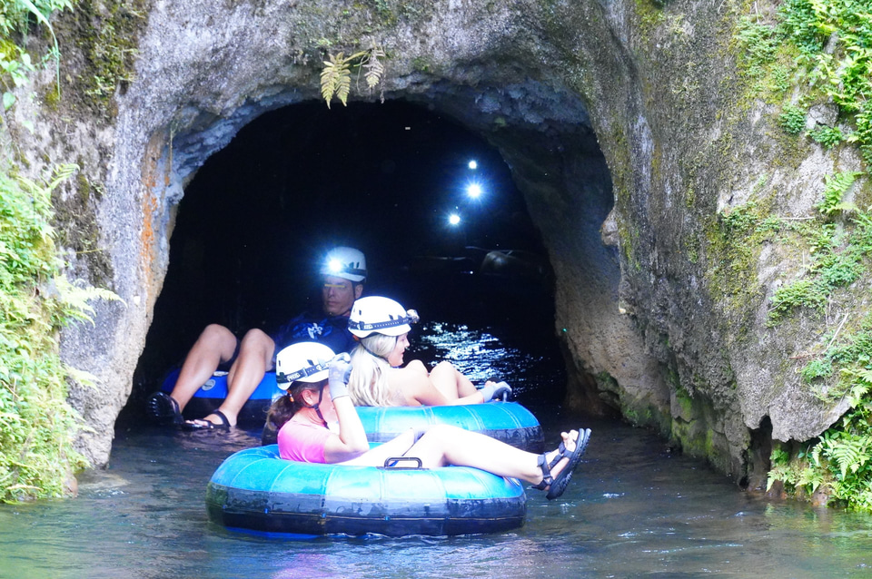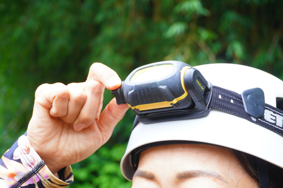 トンネルにはそれぞれに特徴があり、長さや広さもさまざま。落差があってスリルを楽しめるポイントもある。青々とした草木に囲まれた水路と神秘的なトンネル内は静寂な空間で別世界にいるような気持ちになった。あるトンネルのなかでは、ガイドのノアさんが「みんな! 怖い話は好き? ちょっとヘッドライトを消してみて」などと言って参加者を怖がらせたり、「トンネル内の泥は肌にいいから、顔に付けてみて! 明日肌がツルツルになるはず」と教えてくれて、皆が指で泥をすくい取って顔に塗って泥パックをしたり……。あっという間の4kmだった。