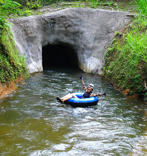 19世紀後半から20世紀にかけてハワイ経済の中心となったのはサトウキビ産業。それはカウアイ島から始まった。このアクティビティは、1870年ごろにリフエ・プランテーションというサトウキビ農園の灌漑のために作られた水路と5つのトンネルのなかを延々とチューブ(浮き輪)に乗って下っていくというもの。