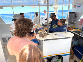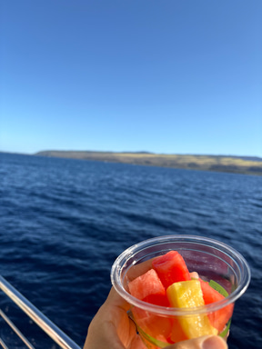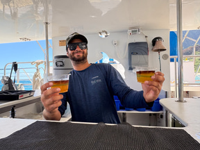 ツアーは1日2回、モーニングツアー(5.5時間)とサンセットツアー(4時間)がある。午後の方が波が高いため、船酔いが心配な場合は午前中がお勧めだ。波のコンディションは日によるので、不安があればはいずれにしても酔い止めを服用すると安心だろう。筆者も酔い止めを飲んで乗船したところ、まったく酔うことはなかった。