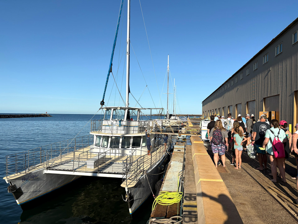 では早速出発しよう。朝7時、リフエからクルマで約30分のポート・アレン・マリンセンターでまずはチェックイン。建物のなかで受付とトイレをすませる。