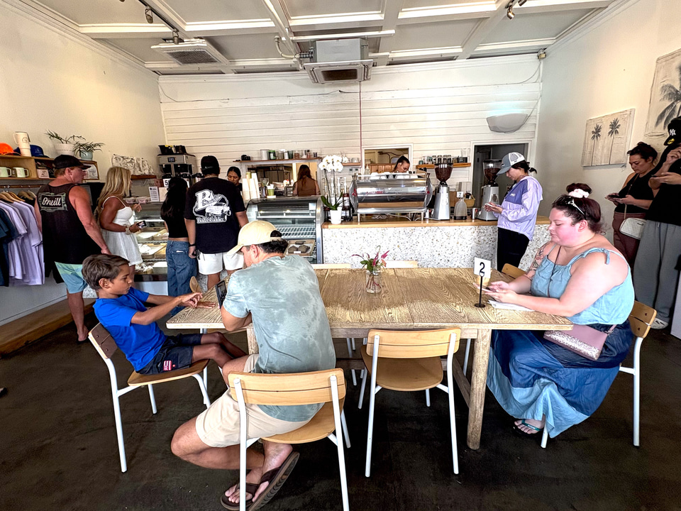 カウアイ島産の食材を主に使ってアメリカンな朝食を提供する。パンは地元で愛されている「カウアイベーカリー」を使用。ブレックファーストブリトー(16ドル)はマッシュポテト、スクランブルエッグ、チェダーチーズ、自家製サルサソースをくるんだ定番の朝食。カルーアポークサンドイッチ(16ドル)はオリジナルレシピで作るカルーアポークに、自慢の(メニューには「最高にイカしてる!」と記載されていた)BBQソースがかかったバーガースタイルのサンドイッチ。バンズはブリオッシュ。