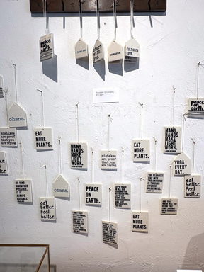 「キコ」は3人の女性が始めたセレクトショップ。ハンドメイドアイテムを中心に、オーナーたちの個性とこだわりがあふれる選りすぐりが集結していて、そのセレクションは幅広い。下の写真の陶磁器のオーナメント(各16ドル)とフレアパンツ(62ドル~)は取材チームが思わず購入したアイテム。