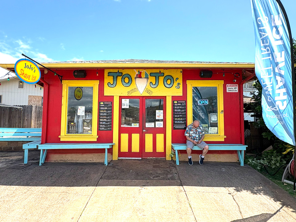 「ハナペペまで行ったなら、かき氷を食べにワイメアに立ち寄るのが鉄則だよ」と、カウアイ島のローカルに勧められたのが、「ジョジョズ・シェイブアイス」。ハナペペからワイメアへは、クルマで約10分で行くことができる。