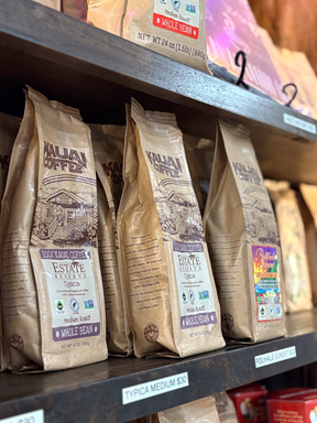 ギフトショップでは、オアフ島のスーパーマーケットでは手に入らない多種類のコーヒーが販売されている。上質な焙煎コーヒー豆はもちろん、帰国後もハワイの余韻に浸れるココナツ、マカデミアナッツ、ヘーゼルナッツフレーバーも並ぶ。