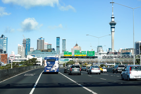 空港からオークランドの市街地までは、クルマで45分程度かかる。スカイタワーのある「スカイシティ・オークランド」とのシャトルバスや、「エアポートリンク」バスと電車を乗継いで行く方法もあるのだが、免許を持っているなら国際免許証を取得しておき空港でレンタカーを借りてしまうのが、個人的にはオススメできる。
