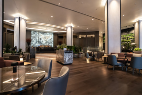 ホテルのレストランは2つある。メインは1階にある「トリベット(Trivet)」という、オールデイダイニング。朝はビュッフェスタイル、ランチとディナーも営業していて、バーカウンターも用意している。外から出入りできるエントランスもあり、宿泊者だけでなく誰でも自由に利用できる。