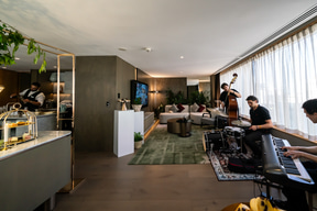 到着時には、歓迎として「JWマリオット・ティ・パーティ」が催され、バー「フォーラム」からのメニューとしてハイティの提供もあった。バンドの生演奏も加わり、シェフが好みの料理やドリンクを提供してくれるという本格的なパーティだった。