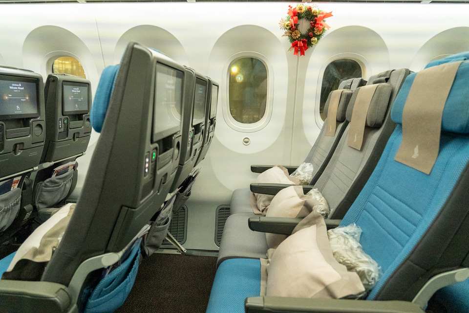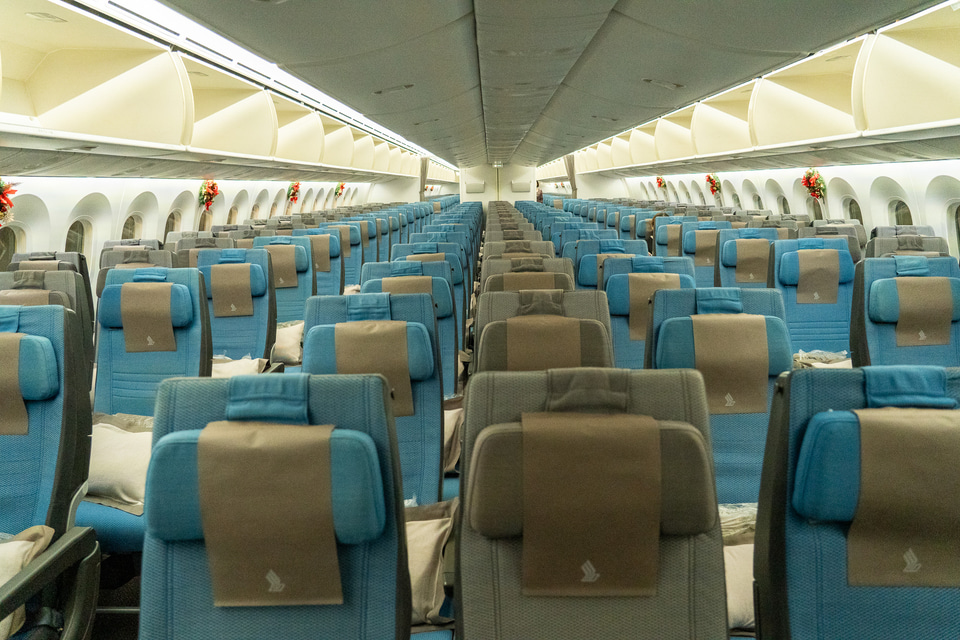 行きはボーイング 787-10のエコノミークラスで