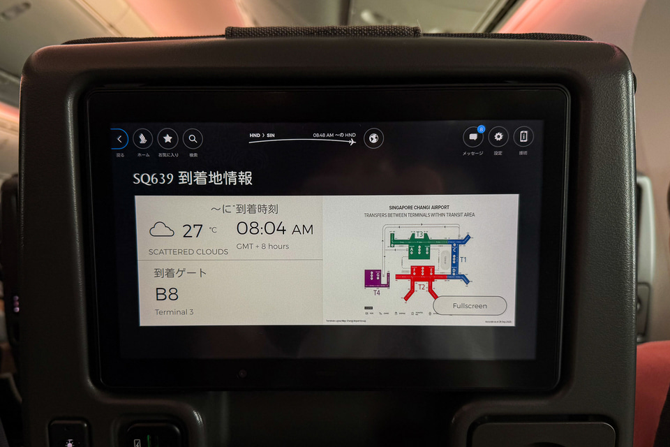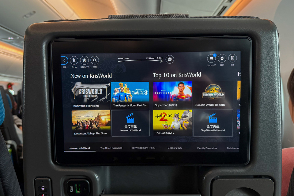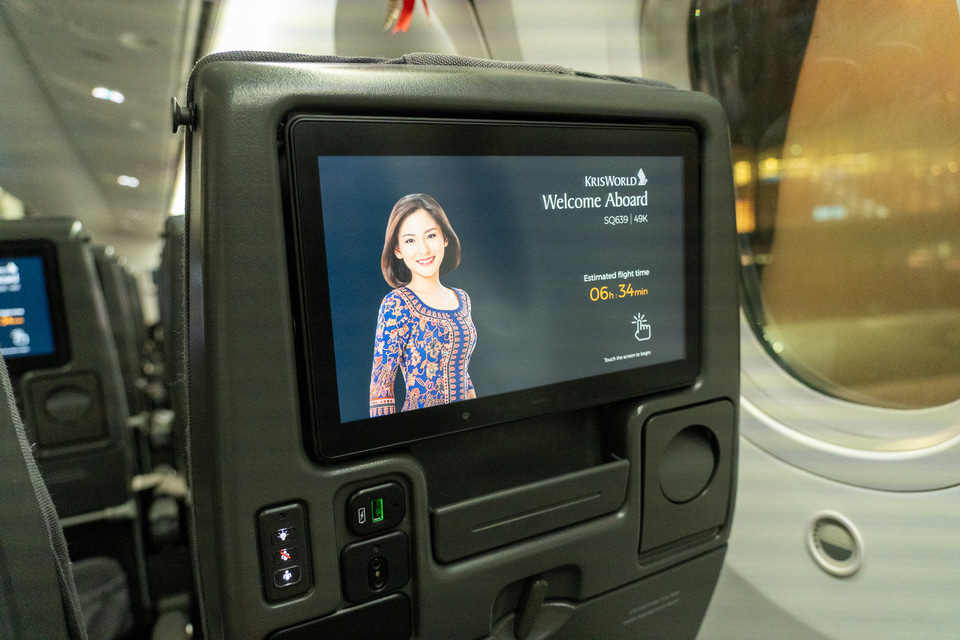 利用したエコノミークラスは3-3-3の横9配列で、全席に11.6インチの個人用モニターを備えています。なお、シンガポール航空グループのマイレージプログラム「クリスフライヤー」会員の登録をすれば、機内でWi-Fiが無制限で利用可能に。入会・年会費は無料なので、会員でない人はぜひ搭乗前に会員登録を!