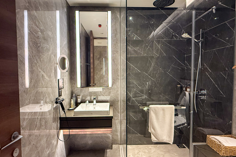 ランカウイ島へのフライト出発までは約5時間。シンガポールラクサや飲茶を平らげて、スイーツやフルーツも食べて、TWGの紅茶も数種類飲んでもまだ時間があったので、私は人生初の“空港のラウンジでシャワーを浴びる体験”をすることに! タオル類やバスアメニティ、ドライヤーなどが完備のシャワールームはスタイリッシュな設え。髪も顔も洗ってさっぱり! 気分よく旅のスタートを切ることができました。