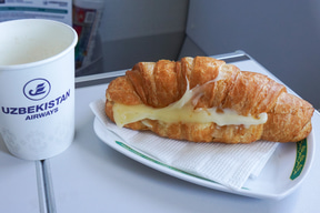 今回のツアーでは、ヒヴァへも空路で移動した。空港はウルゲンチ国際空港になる。移動時間がとれないケースでは、このように空路を使うことも可能だ。往路だけだが、ビジネスクラスのシートが体験できたので、簡単に紹介しておこう。