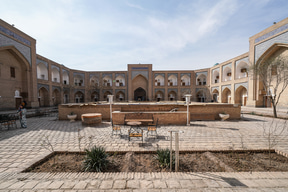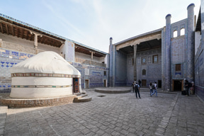クフナ・アルク近くにある「ムハンマド・ラヒム・ハン・マドラサ」は、宗教教育だけでなく、数学なども教える中央アジア最大級の教育施設。現在は博物館となっている。中庭が2つあるのが特徴。教養の高い君主として知られるムハンマド・ラヒム・ハンは、詩人や歌手でもあったそうだ。
