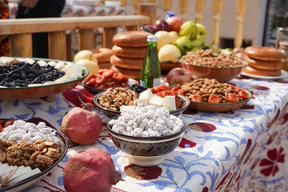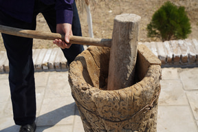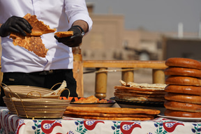 ジュマ・モスクを出たところで、見たことのない食べ物を道行く人に振る舞っていたのでいただいてみた。「スマラク」というスイーツで、小麦の芽をすりつぶして煮込んだもの。ペースト状で甘く少しだけ酸味を感じる。素朴な味で、とても美味しかった。イスラム教のもととなるゾロアスター教時代から祭典で使われているスイーツだそう。