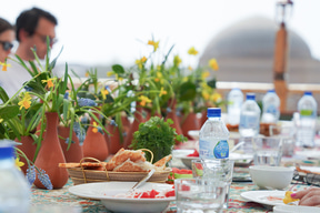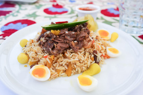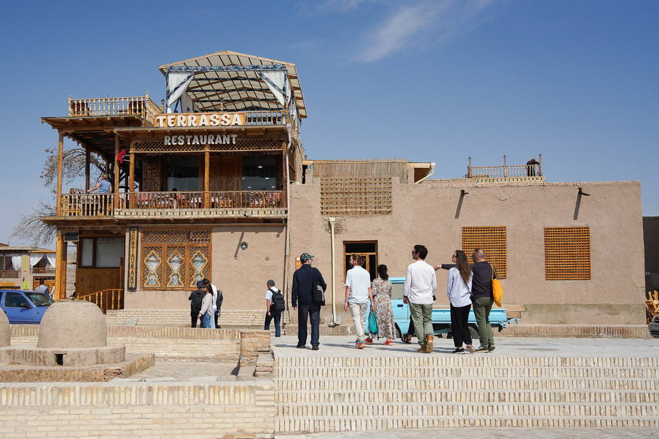 イチャン・カラでの昼食は、城壁内にある「Terrassa Cafe&Restaurant」(Terrassa Cafe Khiva, 220900, Chiva, Khorezm)という、レストランを訪れた。屋上にオープンテラス席が多くあり、イチャン・カラを上から見渡しながら食事ができる人気店だ。