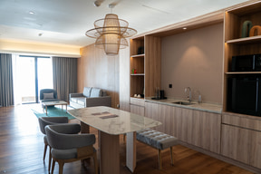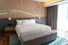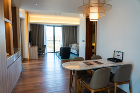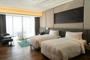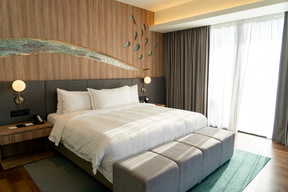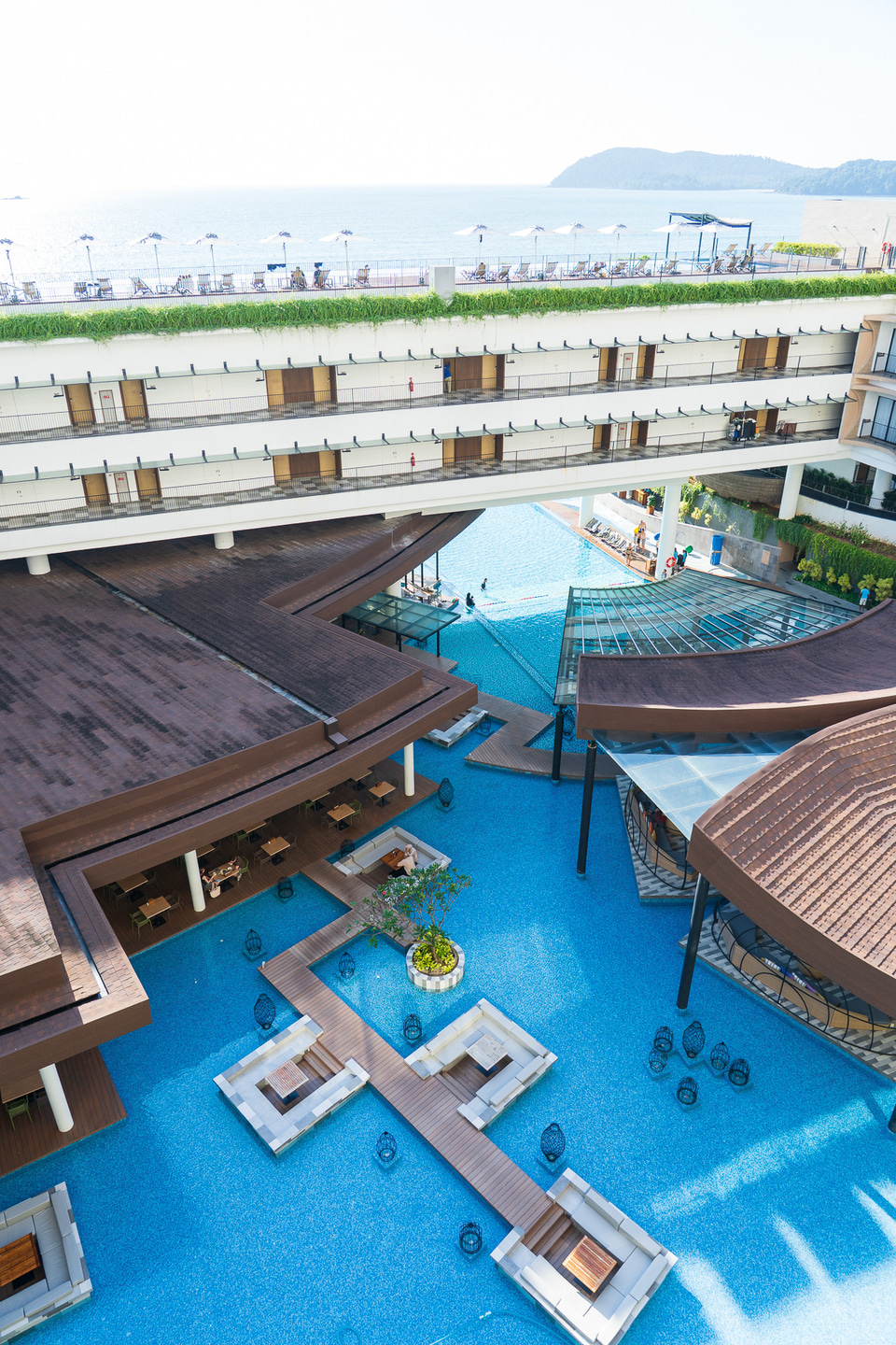 今回のツアーで3泊したのは、空港からクルマで20分ほどのビーチ沿いに建つ「パークロイヤル ランカウイ リゾート」。300室余の客室・スイートのほかに7棟のヴィラがあり、カップルはもちろん、ファミリー、グループなど幅広い層にお勧めできる5つ星ホテルです。コロナ以降にオープンしたホテルだけあって、不便を感じることはなく快適に過ごせました。