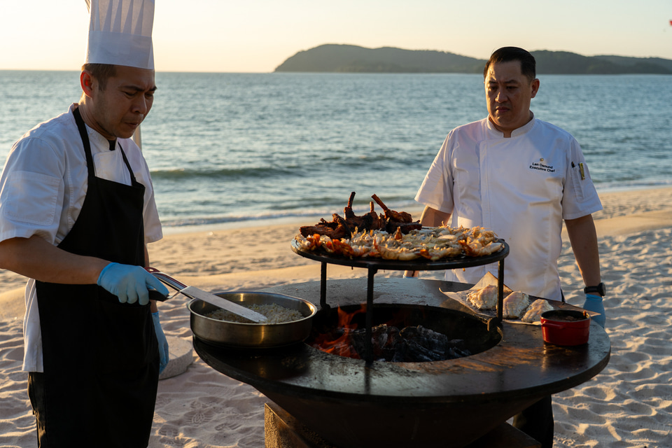 初日の夜は目の前のビーチで、それはそれは素敵なバーベキューディナーをホテル側がセッティングしてくれました。12月上旬のランカウイ島は最高気温22℃前後と半袖1枚で過ごせる快適な気候。海に沈む夕陽を眺めながらグラスを傾けた贅沢な時間が忘れられません。のんびりした島時間にスイッチできたひとときでした。