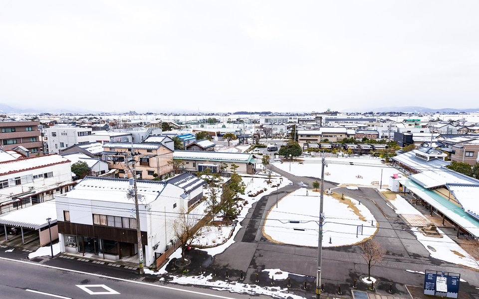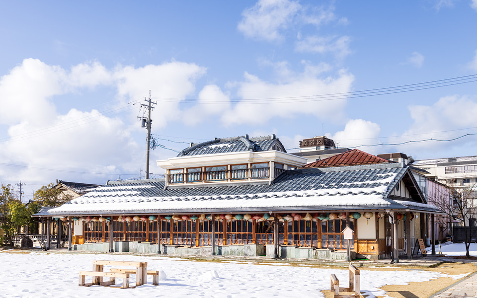 Rakuten STAY あわら温泉が位置するのは、温泉街の中心となるえちぜん鉄道三国芦原線「あわら湯のまち」駅のほぼ目の前。駅前にある「あわら温泉 湯のまち広場」を抜けていけばあっという間(公式では徒歩約3分)だ。