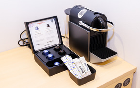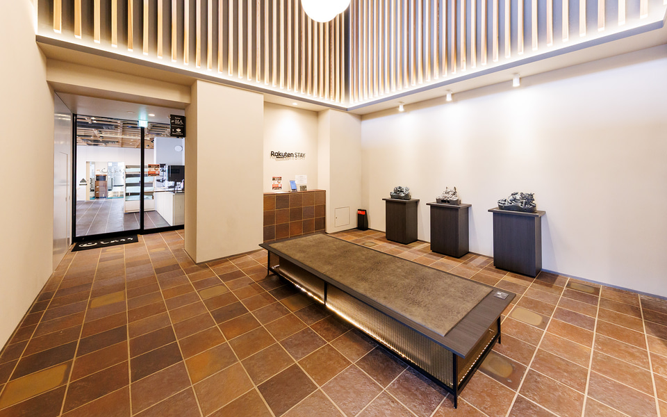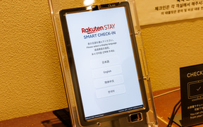 ほかの楽天ステイと同じく施設の入口は電子ロックがあるのみ。メールで送られてきた暗証番号を利用して入館および各自の部屋に入室。チェックインはもちろんチェックアウトまで室内のタブレットで行なう。フロントが混雑していて待たされる、なんてことがないのはうれしい。なお、トラブル時もタブレットを利用しオンラインでサポート担当者とビデオ通話する仕組みになっている。