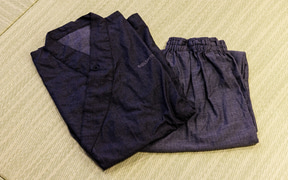 ベッドルームが用意されるCタイプと異なり、こちらは布団を使う和洋室。ミニキッチンやテーブル、温泉、テラスなどはCタイプと同様。広さは51m2。取材した部屋はドッグフレンドリールームのため、専用の畳となっているほか犬向けの備品を用意していた。