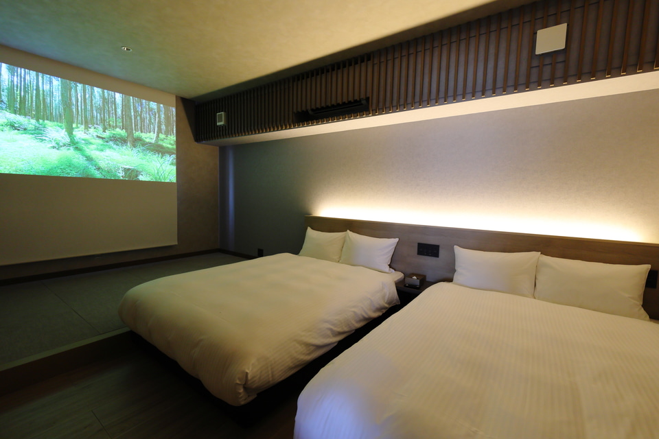 施設には有人のフロントはなく、予約時に発行される暗証番号で入室したあとにチェックイン~チェックアウトまでの手続きを客室内に用意されたタブレットで行なう。事前に宿泊者情報をWebサイトにて登録しQRコードを発行しておくと現地ではチェックイン時にQRコードをかざすだけ。チェックアウト時もワンクリックと非常に簡単だ。