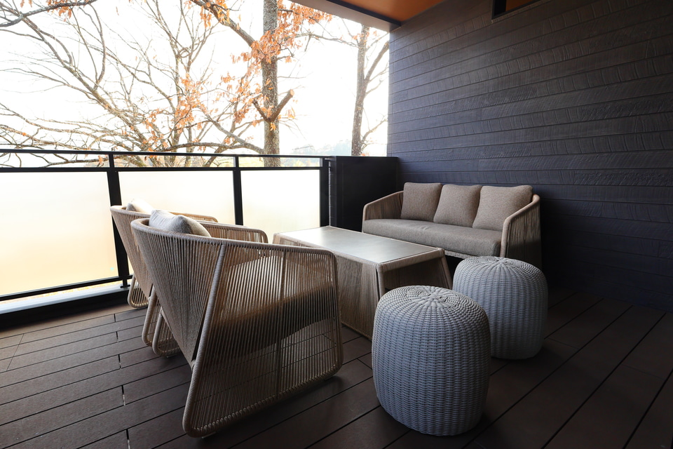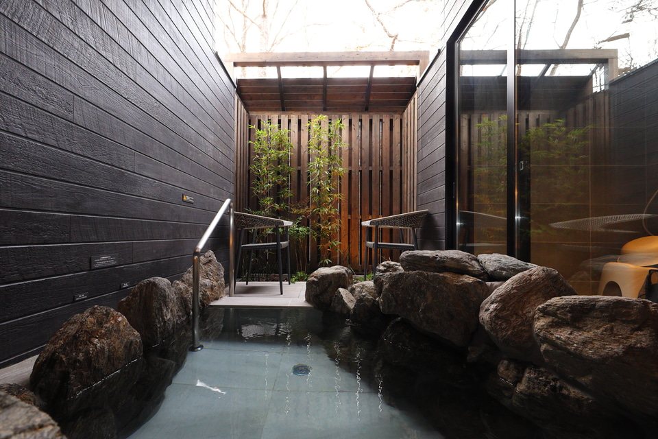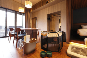 いずれも自家源泉の天然温泉とサウナ、テラスを備え、料金はA/Bタイプが5万4000円~、C/Dタイプが4万5000円~となっている(素泊まり、税込み)。なおAタイプの1室、Dタイプの4室は玄関横に足洗水栓、部屋にケージ、フードボウル、ベッドを備えた「ドッグフレンドリールーム」となっていて、愛犬と一緒に宿泊できる。