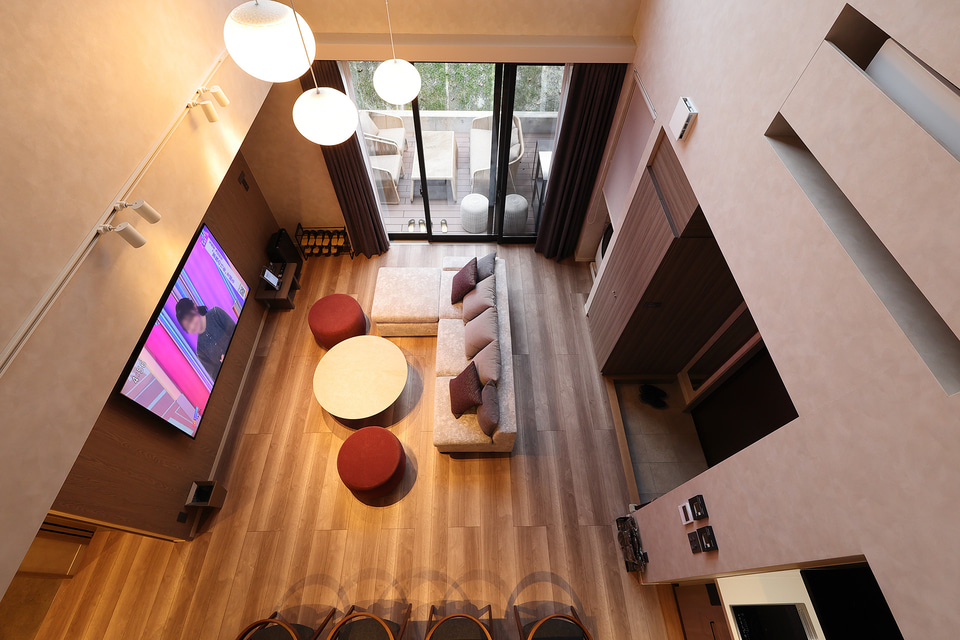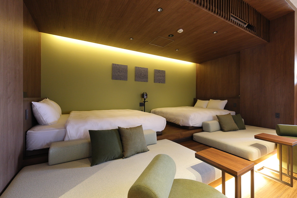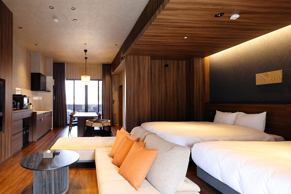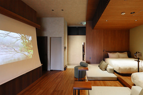 客室面積は1棟あたり61~103m2で、部屋のタイプは2階建てで定員10名の「Aタイプ」、離れ棟のある定員8名の「Bタイプ」、平家で定員6名の「Cタイプ」、平家で定員4名の「Dタイプ」の4種。