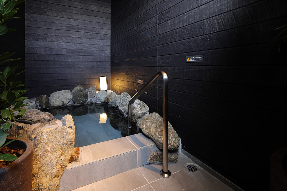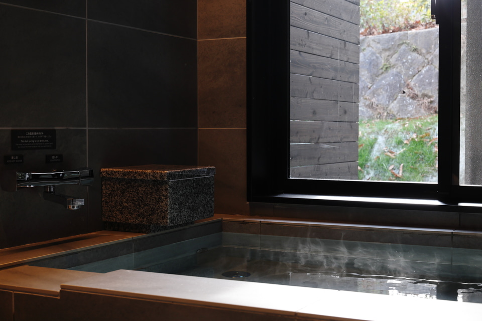 今回試泊したのは「Bタイプ」の客室。天然温泉は露天岩風呂と内風呂の2種。露天岩風呂とサウナは離れ棟にあり、母屋の内風呂、離れ棟それぞれに洗面脱衣室を用意している。天然温泉はクセのないアルカリ単純泉で、温度もそれほど高くないので入りやすい。サウナはセルフロウリュができるもので今回は80℃程度で利用してみたが、サウナストーンに水をかけるたび高温のスチームの対流を感じられ非常に気持ちよく過ごせた。サウナ室の外には常温と冷水が選べるウォーターサーバーを用意しているので、こまめに水分補給できるのはありがたい。欲を言えば水風呂も欲しいところだが、今回は冷水のシャワーで代用した。