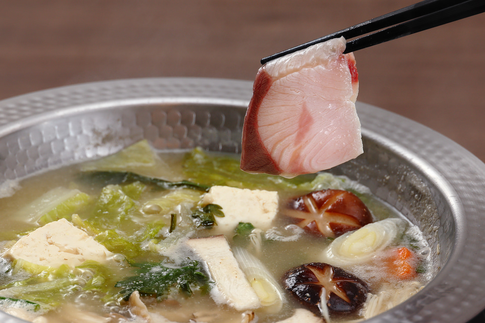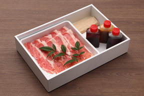 ヴィラならではのプライベート空間で楽しむ食事も充実している。部屋の冷蔵庫には事前に注文したメニューの食材のセットが用意されていて、簡単な調理で本格的な食事をいただけるのも大きな魅力だ。今回の試泊では「大分県産かぼすブリと奥豊後豚のしゃぶしゃぶ」が用意されていた。