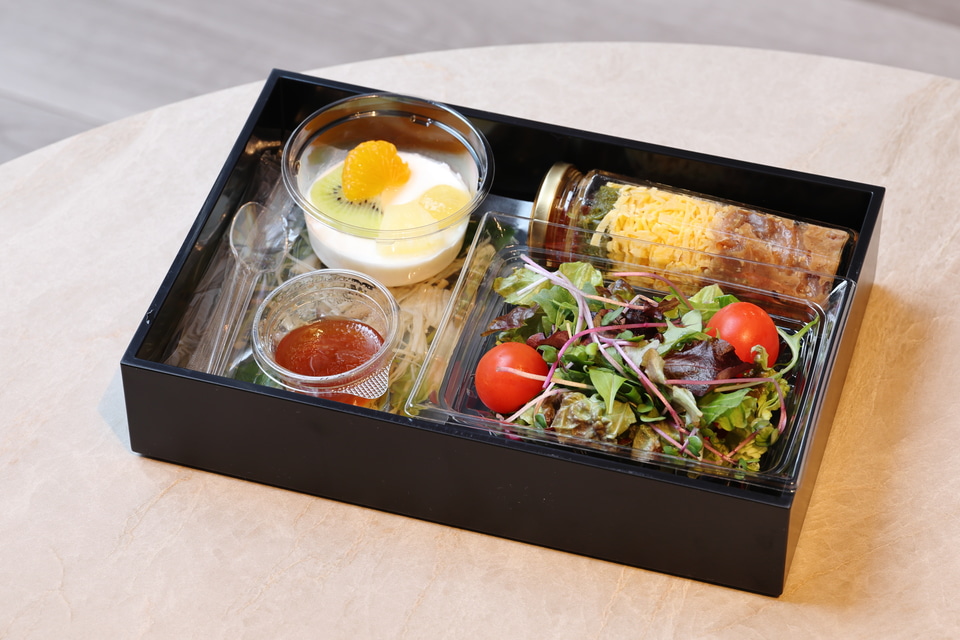 朝食は大分県産かぼすブリのりゅうきゅう丼。この甘辛いつけ汁に浸けた刺身をご飯に乗せた大分の郷土料理も、すべての食材を瓶詰めで用意しているので手間要らず。それでいて味は上品かつ本格的。普段料理を一切しない人でもしっかり美味しくいただける。