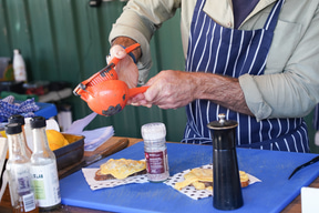 高速道路を北に40分ほど走って、小さなマタカナという村にやってきた。ここでは「マタカナ・ファーマーズ・マーケット」(2 Matakana Valley Road, Matakana)が、土曜の午前中(8時~13時)のみ開催されている。地元農家などが出店しているマーケットだ。地元産の農産物や軽食が楽しめる。