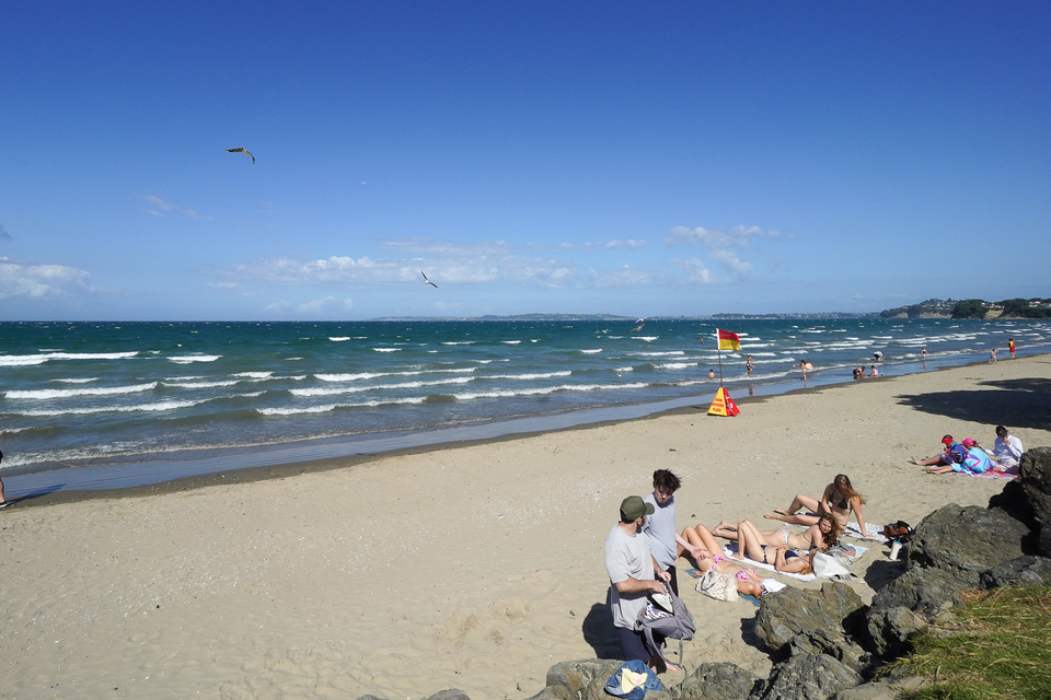 さらに南下していき、「オレワ・ビーチ」に向かった。ここは3kmの雄大なビーチが広がっていて、街も大きめ。オークランドからクルマで30分もかからない距離にある。